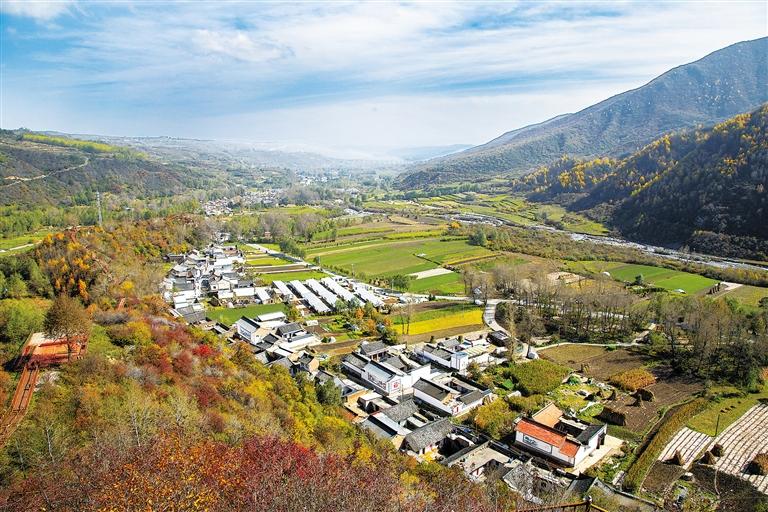 深秋時節的臨夏縣關灘溝,層林盡染,如詩如畫,仿佛一個五彩斑斕的童話世界。記者 胡沛 攝...